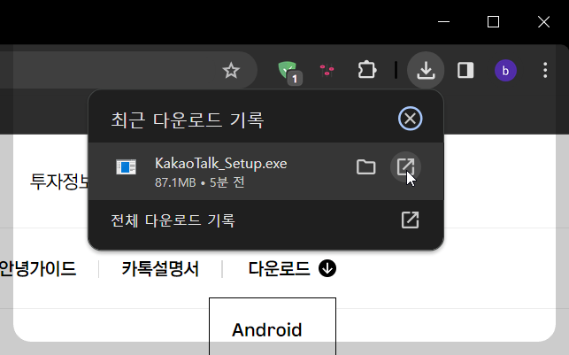 이 과정이 "어렵다" 하시는 분들은 아래의 링크를 눌러 카카오톡 설치파일을 바로 다운로드 받으실수도 있습니다.